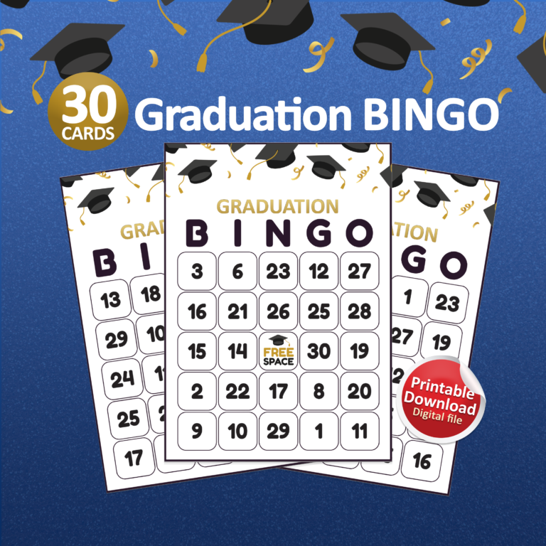 Bingo is one of those rare games that genuinely works for every age, every group size, and every energy level. This version is graduation-themed throughout, and the bundle includes 30 unique bingo cards — so you have enough for a big party without printing the same card twice.