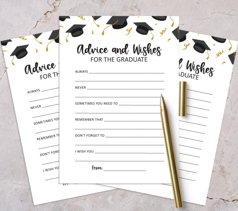 Save this one for last. The Advice and Wishes activity gives every guest a chance to write their best advice or a heartfelt wish for the graduate. It’s not competitive, it’s not rushed — it’s just a quiet, meaningful moment at the end of the party.