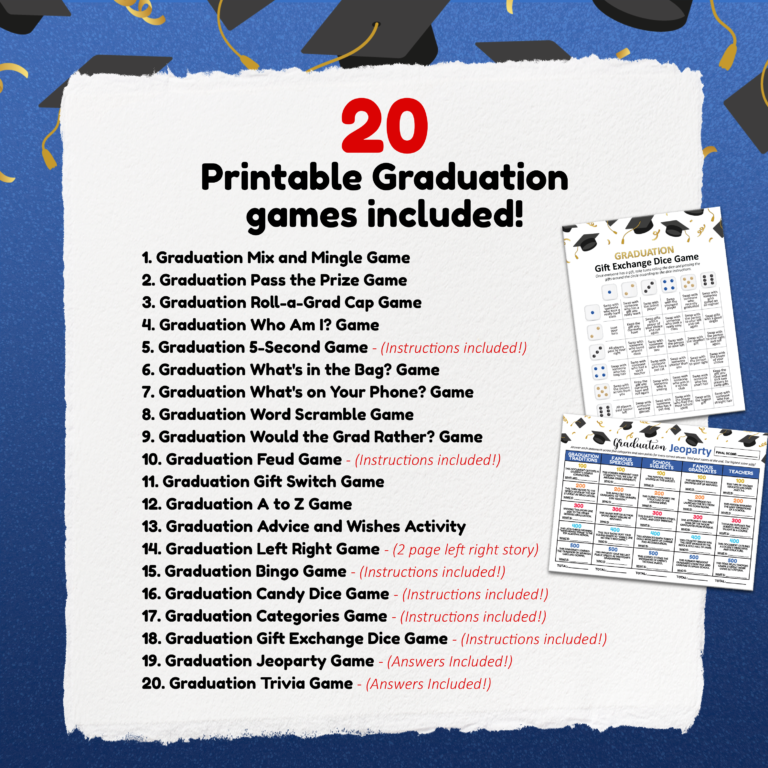 👉 Download the 20 Printable Graduation Games Bundle — everything on this list in one instant download, organized across four printable PDFs.