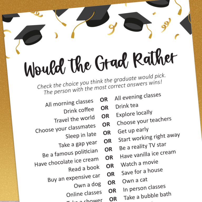 It’s a sweet, personal game that works best with friends and family who know the graduate well. It always generates conversation, laughter, and the occasional “wait, really?!” moment when the graduate reveals the actual answers.