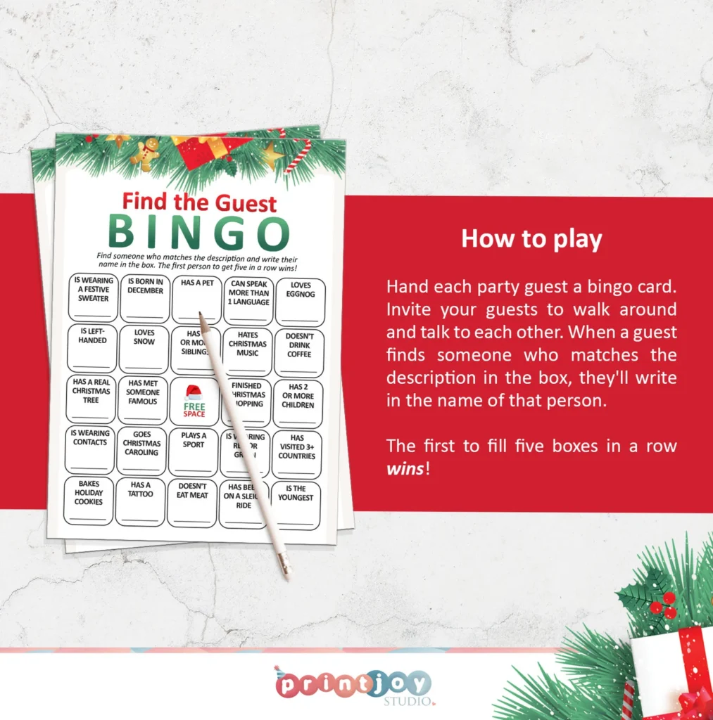 Playing this Christmas Find the Guest Bingo game is simple, but it’s packed with interactive fun.