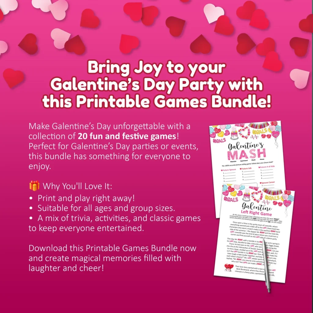 🎉 Product Highlight: Instant Party Solution – The 20 Printable Galentine’s Games Bundle guarantees a stress-free hosting experience.