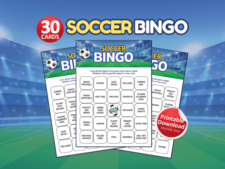 Start simple. Grab your Printable Soccer Bingo Cards for an instant download with 30 unique cards that are print-and-play ready in minutes. Then layer in the other ideas from this post and watch your living room come alive on match day.
