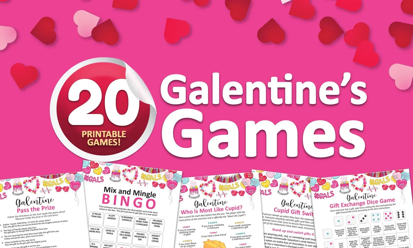 20 Printable Galentine’s Games Bundle — everything done for you, ready to print and play!